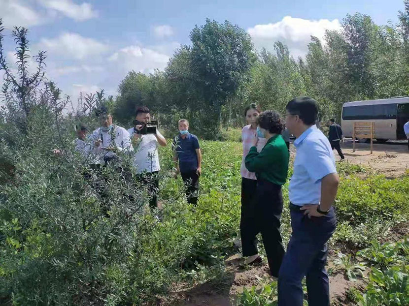 2021年8月8日,大安市市委书记杨国辉书记、大安市副市长王敬东、产业振兴办主任等市里领导莅临我公司沙棘产业基地参观考察指导。图片如下: